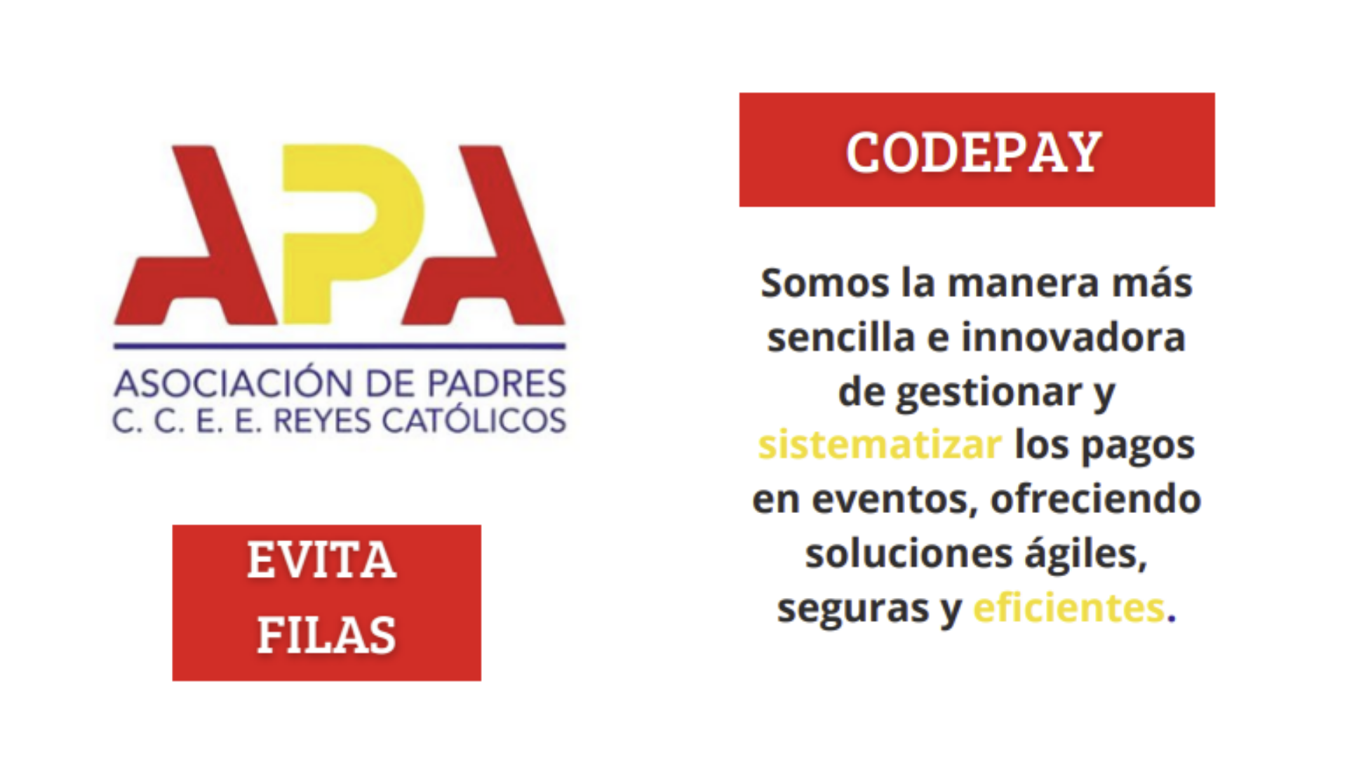 Teniendo en cuenta el gran éxito del año pasado y para que este año disfrutes al máximo y evites las filas y el manejo de efectivo en el día de la familia, la APA ha implementado por segundo año consecutivo CodePay, la manera más sencilla e innovadora de gestionar pagos en este gran evento.